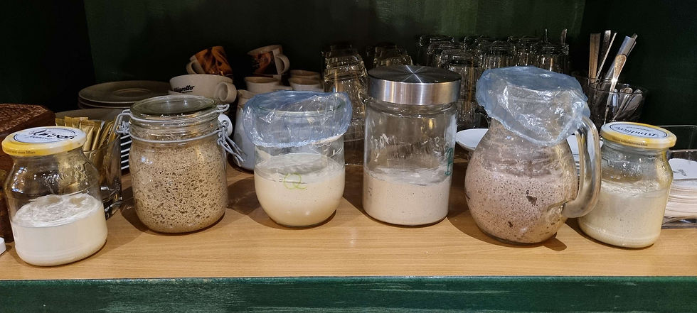 Der aus Buchweizenvollkornmehl blubbert bereits ganz ordentlich. Liane hat ein erstes glutenfreies Brot mit Hefe gebacken, den Pablo, welches am Sonnabend verkostet und begeistert aufgenommen wurde.